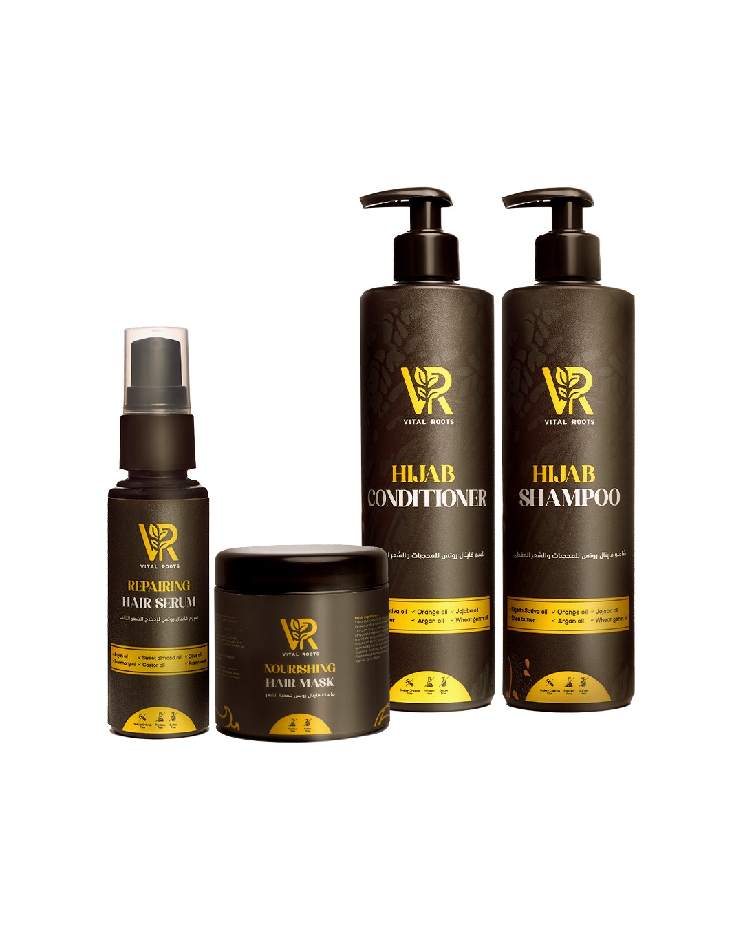 The Hijab Line Full Care Set is formulated to protect, nourish, and refresh hair that spends most of the day under a veil. It addresses common hijabi hair concerns like scalp buildup, dryness, breakage, and loss of volume.